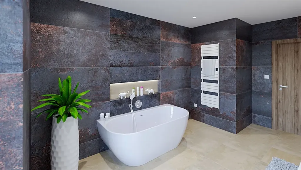 V 1.patře Vás hned zaujme prostorná hala se šikovně osazenou pracovnou. Dále zde máte dva prostorné dětské pokoje se vstupem na jednu ze dvou teras, koupelnu se sprchovým koutem a vstupem na druhou terasu, samostatné WC a v neposlední řadě ložnici majitelů s příjemně velikou šatnou a také vstupem na druhou terasu. Z teras máte panoramatický výhled do kraje a opravdu skvělé tu budou zejména západy slunce, protože na západ od tohoto domu již žádné stavby nejsou a v územním plánu ani nejsou plánovány. Součástí domu je také technická místnost pro skladování zahradní techniky, kol nebo motocyklu.