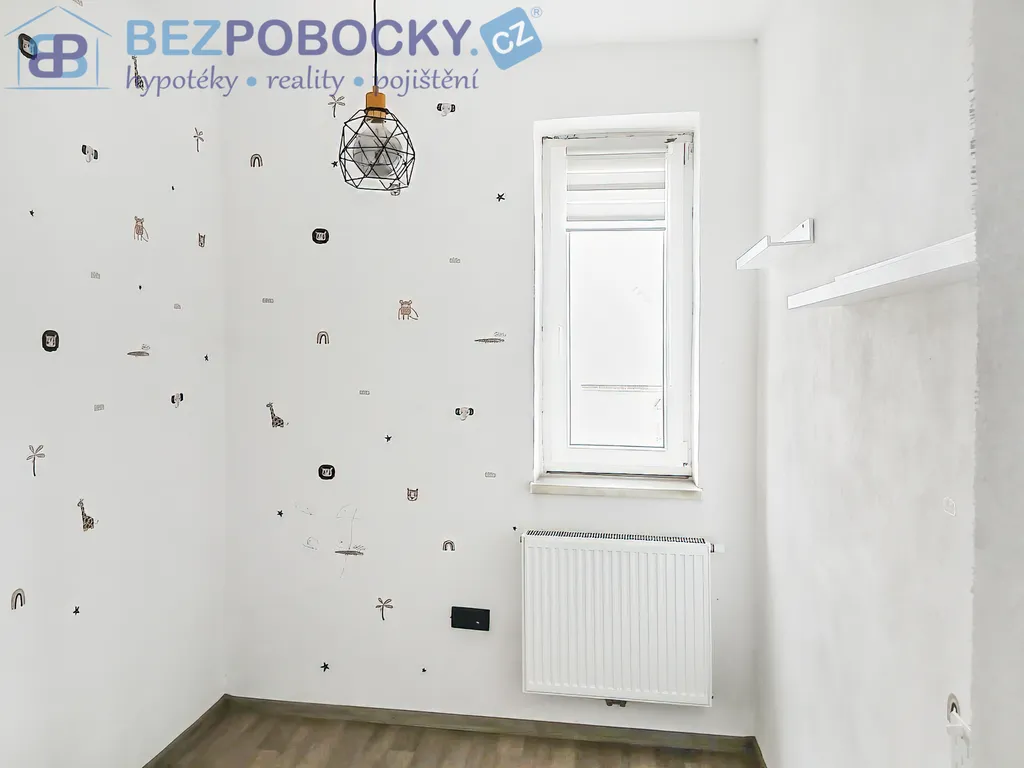 Dále je v přízemí kuchyň s novou kuchyňskou linkou, spíž, ložnice, dětský pokoj, koupelna a obývací pokoj s krbem s výměníkem, který zajišťuje vytápění celého domu. Z obývacího pokoje je přímý vstup na nově vybudovanou prostornou dřevěnou a zastřešenou terasu.