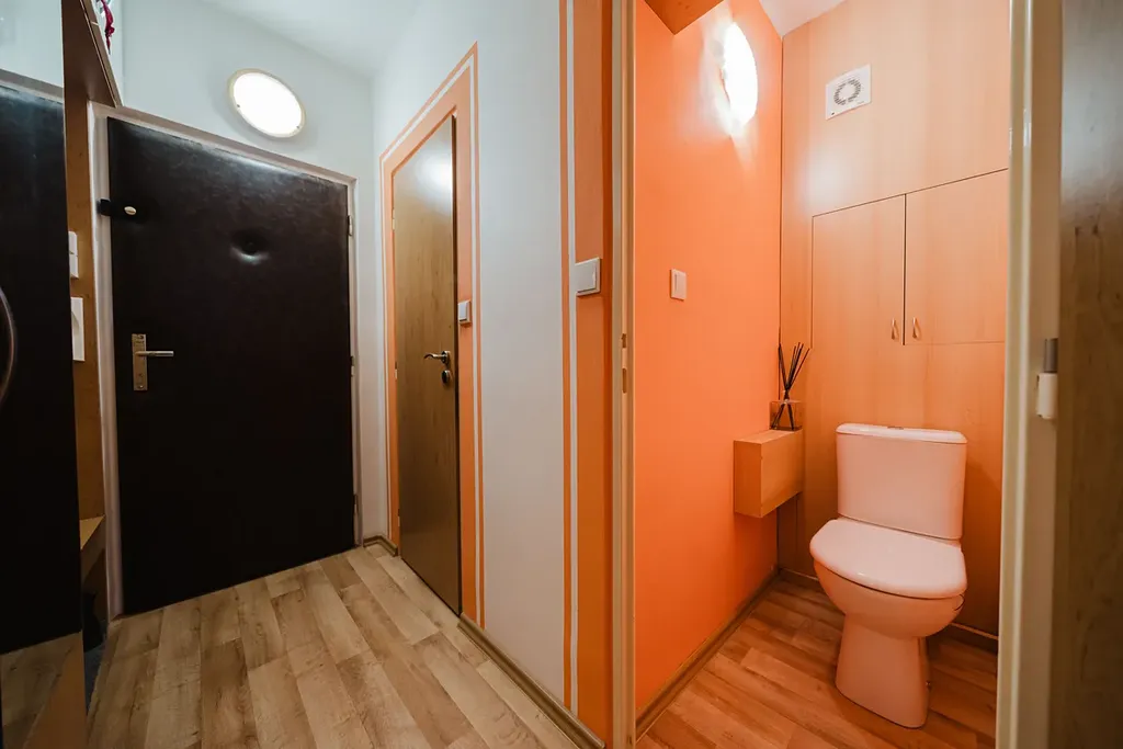 V bytě proběhla kompletní rekonstrukce – moderní kuchyně, nové plovoucí podlahy, interiérové dveře, koupelna s vanou a samostatná toaleta.