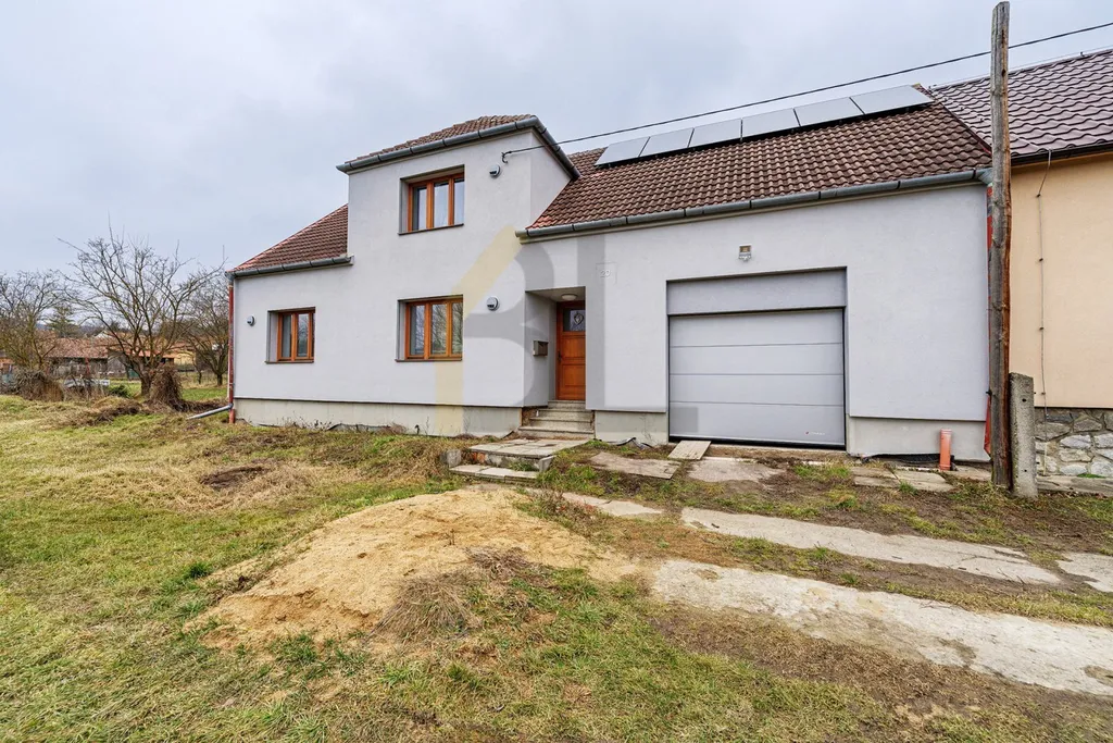Ze dvora je vstup do technické místnosti a dalšího úložného prostoru. Součástí nemovitosti je také garáž s novými sekčními vraty a na zahradě se nachází vinný sklípek.
