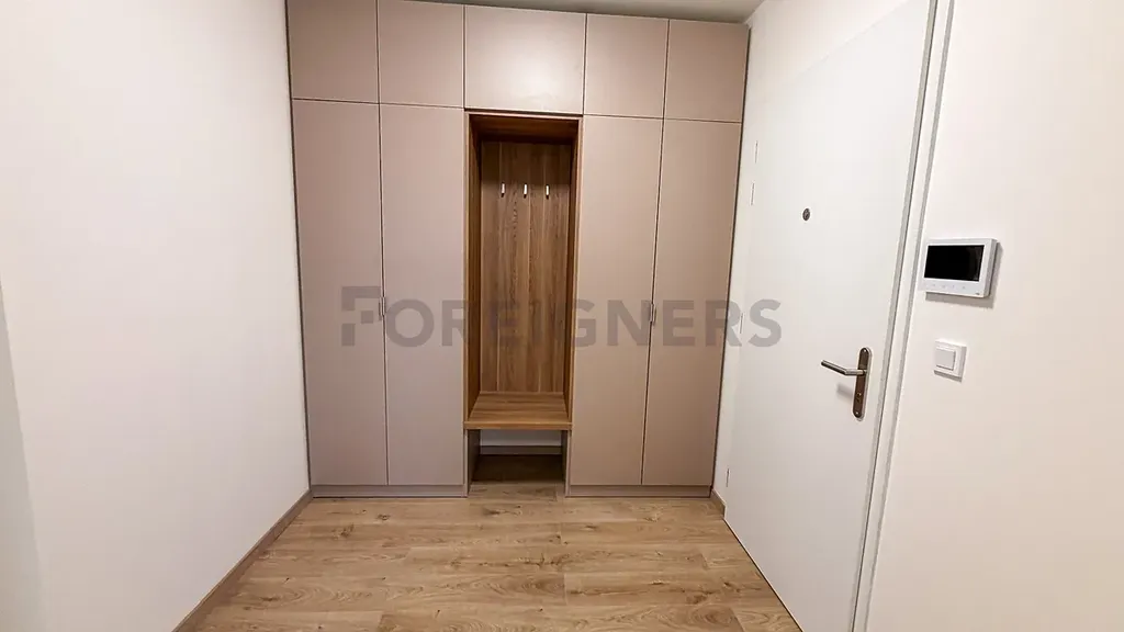 Kuchyň je vybavena novou kuchyňskou linkou na míru s vestavnými spotřebiči – myčkou, troubou, sklokeramickou varnou deskou, digestoří, lednicí a mrazákem. V ložnici i předsíni jsou instalovány vestavné skříně, které poskytují dostatek úložného prostoru.
