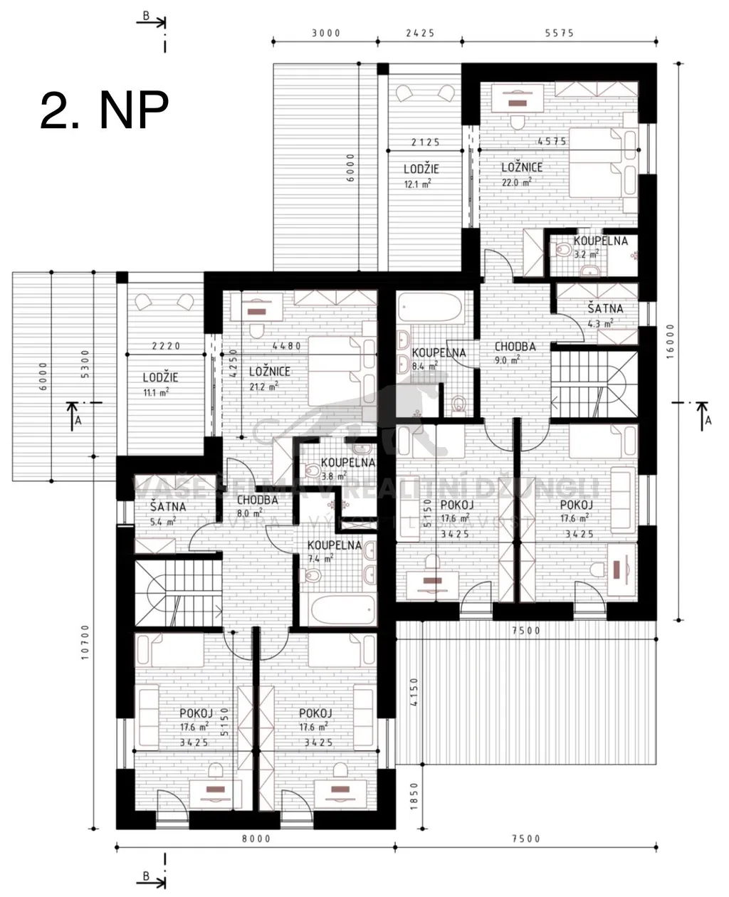 Na obrázcích označeno jako domy A1, A2, B1, B2