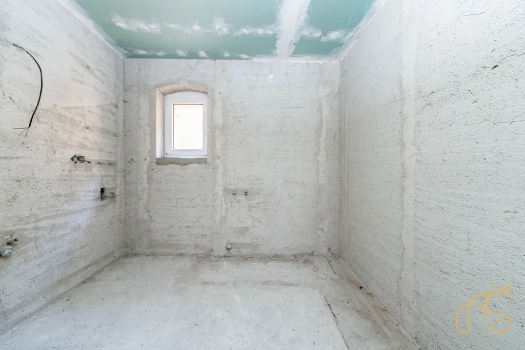 Pravé - severní křídlo domu je v započaté rekonstrukci - dvě místnosti a koupelna s toaletou, kde chybí jen osazení, obklady a dlažba.