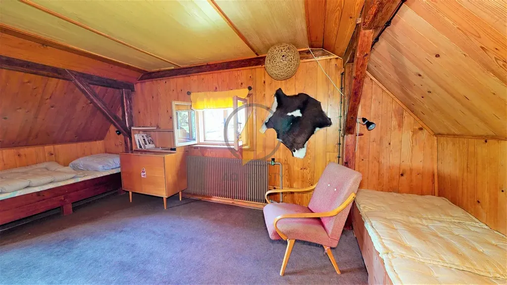 Prodej chalupy se zahradou o CP 2000 m2 v klidné části obce Karlov - Stará Paka. Dispozice: prostorná světnice s kachlovými kamny, vstupní chodba s pecí, ložnice, pokoj se vstupem do podkrovní místnosti, prostor - příprava pro koupelnu, chemické wc. Na dům navazuje chlév a seník. Nabízíme možnost jednat i o prodeji vedlejší prostorné stodoly. Chalupa je částečně podsklepena. IS: EL.230/400V, nutnost vybudování vodovodní přípojky a ČOV, plyn v obci není, lokální topení na tuhá paliva. Nádherné místo uprostřed přírody, ideální k rekreaci i k trvalému bydlení. Doporučujeme prohlídku. PENB G.