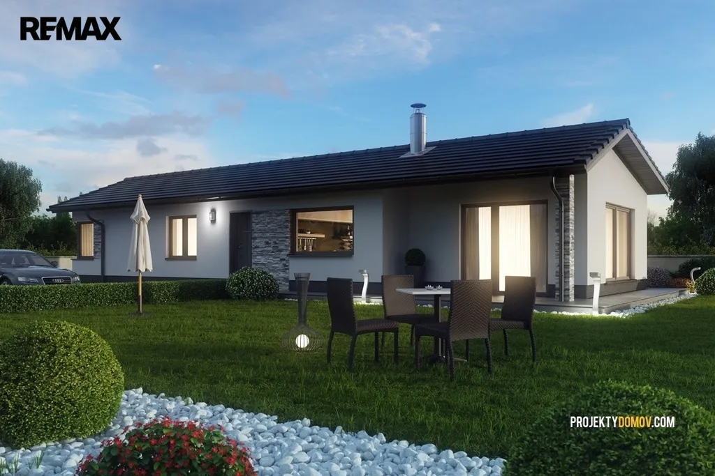 Dispozice 4+kk s užitnou plochou 102 m2 je ideální pro 4člennou rodinu. Propracovaná studie rodinného domu zaručuje vysokou kvalitu provedení spolu s ekonomicky přijatelným řešením. Dům nabízí prostorný obývací pokoj s kuchyňským koutem a spíží; ložnici, 2 dětské pokoje, prostornou koupelnu s vanou a sprchovým koutem, komfortní zádveří a technickou místnost se samostatným WC. Velké francouzské okno v obývacím pokoji zajistí dostatečné množství světla a pohodlný vstup na zahradu.