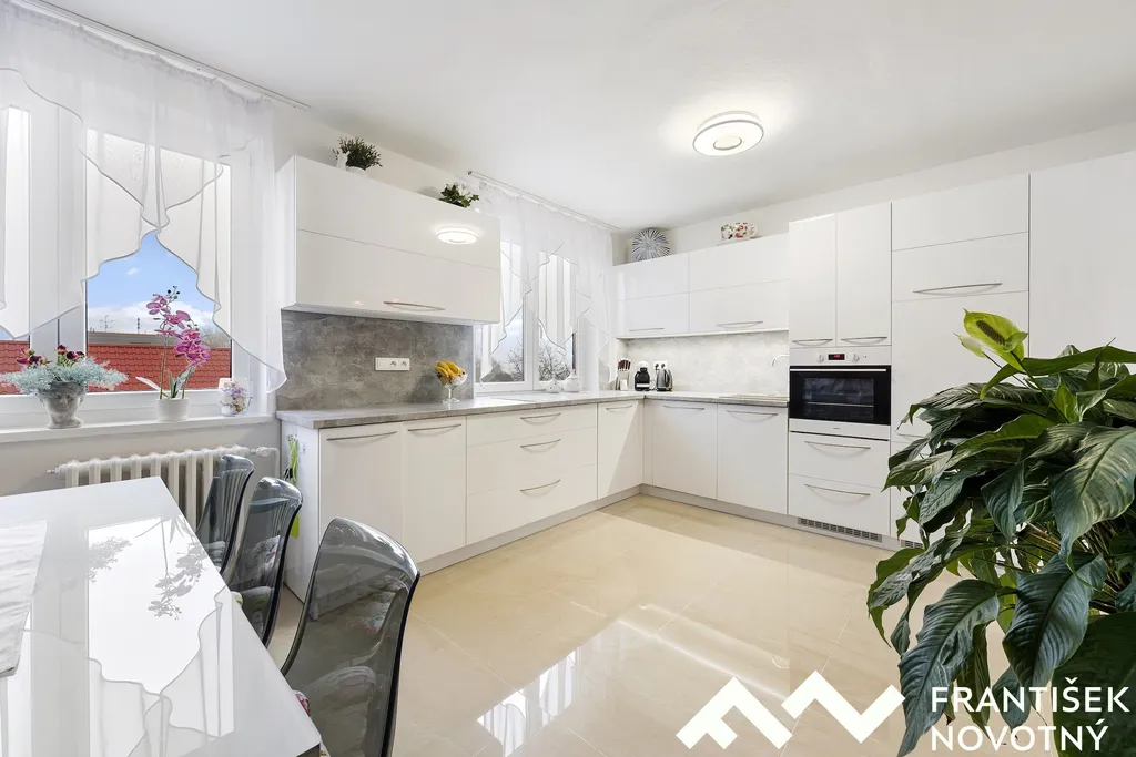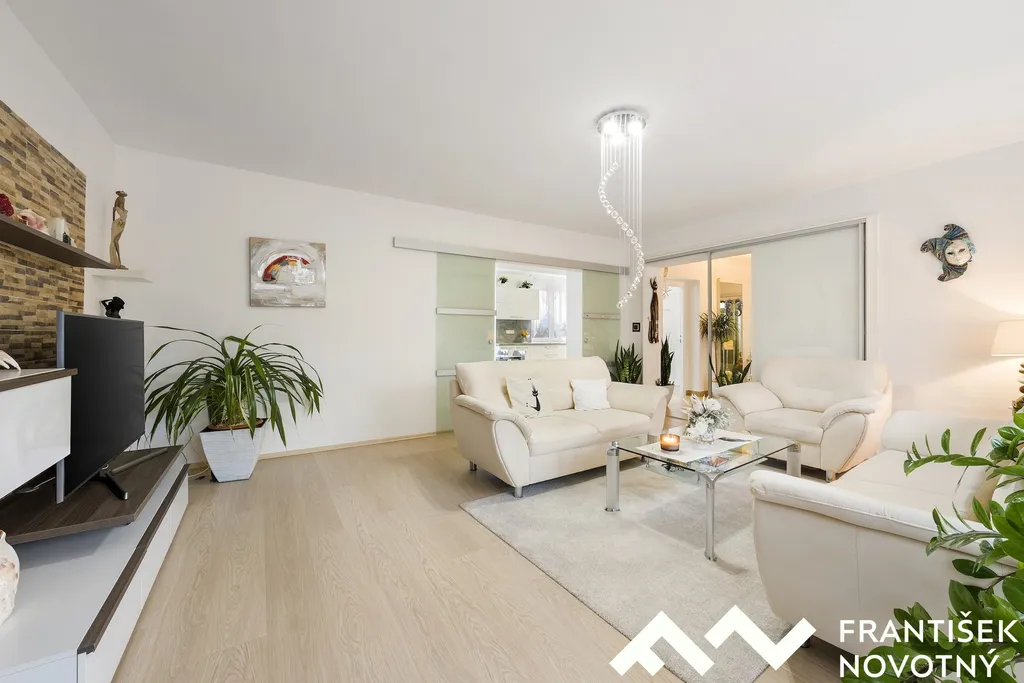 prostorný obývací pokoj se vstupem na lodžii, světlá kuchyně, tři neprůchozí obytné místnosti, koupelna s bezbariérovým sprchovým koutem.