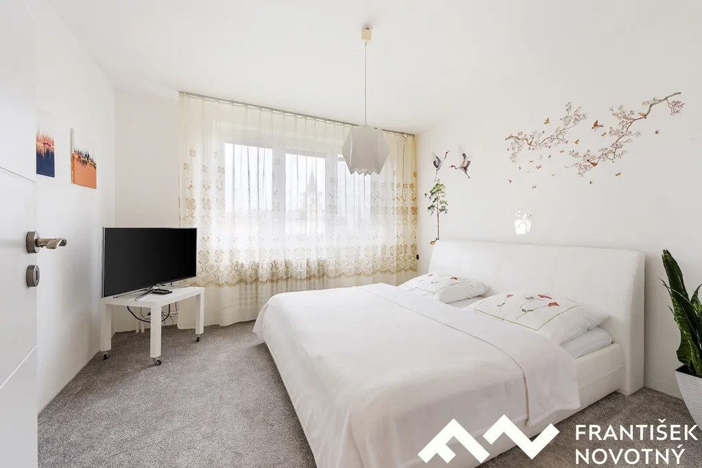 Dvě samostatné místnosti, lodžie s výhledem do zahrad a na Pálavu, velká půda vhodná pro další obytnou vestavbu, ateliér nebo domácí pracovnu.