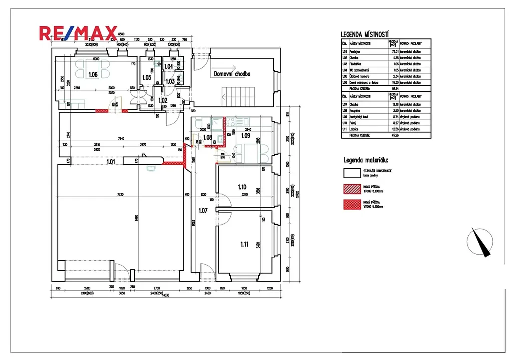 Obchodní plocha 98 m² + byt pro nájemce 45 m² k bydlení. Celková užitná plocha 143 m².