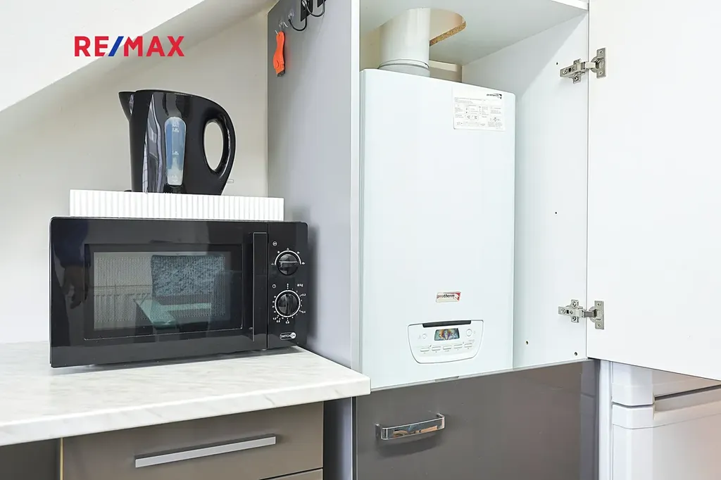 Ohřev vody a vytápění zajišťuje kombinovaný kotel.