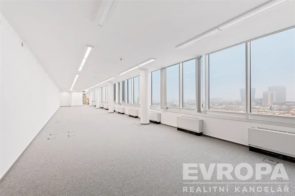 Jednotka se nachází v 8. NP a je řešena jako velký open space s kuchyňkou. Prostory lze dispozičně upravit dle potřeb budoucího nájemce.