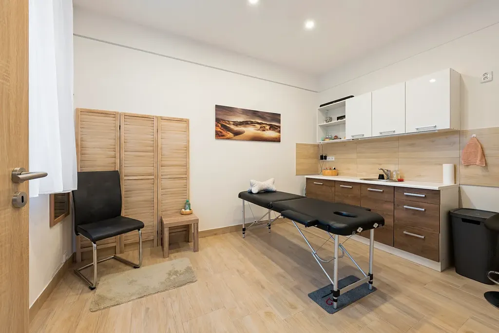 Nebytový prostor v zahradním traktu (samostatný domek) – kompletně zrekonstruovaný, aktuálně využívaný jako masérna, s přípravou na plnohodnotné bydlení.
