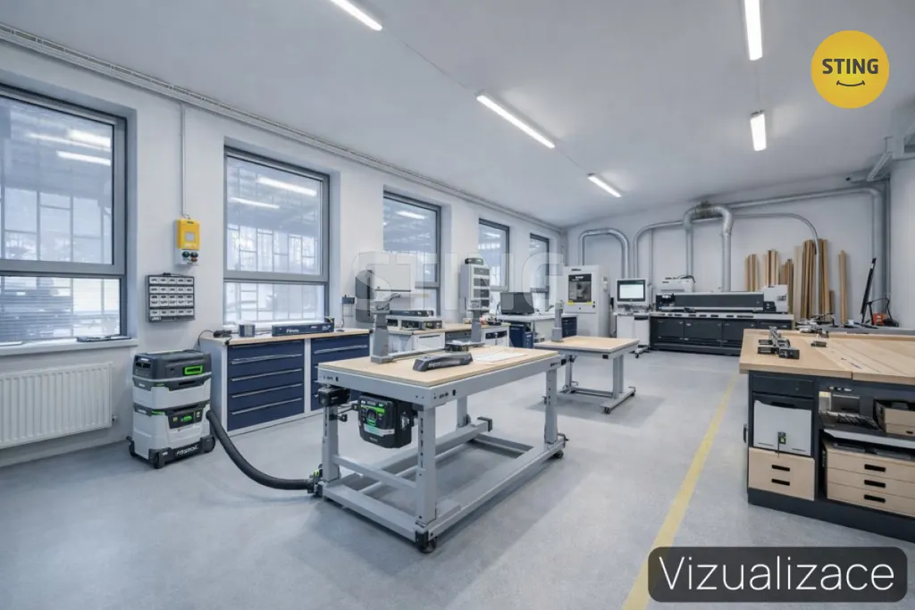 s prostory k lehké výrobě a skladování. Jeho rozloha umožňuje podnikat v různých oblastech ( např: dřevovýroba, kovoobrábění, autoservis nebo jen sklad apod.)