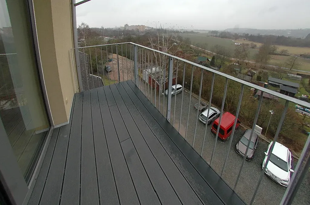 Nabízíme k prodeji mezonetový (dvoupatrový) byt 3+KK v nově provedené nástavbě na kompletně rekonstruovaném domě v Plzni, Skvrňanská ulice. Plocha bytu je 78,2 m2, k bytu náleží balkon o výměře 3,9 m2 a dále terasa o výměře 6,4 m2, příslušenství tvoří prostorný sklep umístěný v suterénu. K bytu si lze samostatně navíc pronajmout venkovní parkovací stání (800 Kč/měs). Byt je atraktivní svým dvoupodlažním řešením, v přízemí je k dispozici kuchyňský kout s jídelnou, pokoj s balkonem, WC a koupelna, komora, v patře pak najdete obývací pokoj, ložnice s terasou. Kuchyně je vybavena lednicí, sporákem s varnou deskou. Z terasy se naskýtá široký výhled do okolní krajiny směrem na Radčice, údolí řeky Mže. Terasa je vybavena zásuvkou, v létě je zde možnost zapojení elektrického grilu. Vnitřní schodiště prostor ozvláštňuje a samo o sobě tvoří zajímavý interiérový prvek. Podlahy plovoucí. Dům se nachází v lokalitě, která propojuje střed města a okrajovou zónu s množstvím zeleně. Dům je situován na konci Skvrňanské ulice, centrum města je vzdáleno pouhých 800 metrů, zastávka tramvaje vzdálena 100 m od domu, oblíbené nákupní centrum Plaza 400 metrů. V místě jsou jedinečné možnosti pro sportování i bezpečné vyžití pro děti. Bytový dům nabízí svěží a moderní bydlení. Vytápění dálkové, v celém bytě je pro vyšší komfort příjemné podlahové topení s centrálním ovládáním. Ohřev TUV prostřednictvím el. bojleru. Koupelna je vybavena sprchovým koutem, samozřejmostí je provedená příprava na umístění pračky. Předsíň je vybavena šatní skříní a botníkem na míru. Dům není vybaven výtahem, byt se nachází ve 4.NP, je třeba s touto skutečností předem počítat. Sklep je dostatečně prostorný, zděný. Energetická třída stanovena jako G, PENB který by tento údaj zpřesnil, zatím není k dispozici.