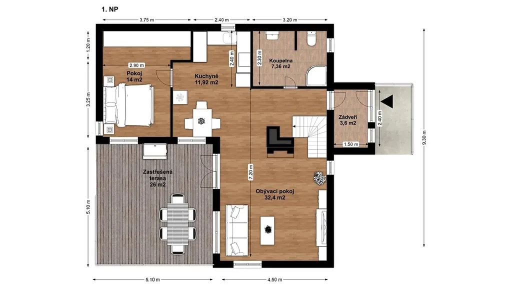 • všechny obytné prostory dostatečně prosklené a orientované na jih