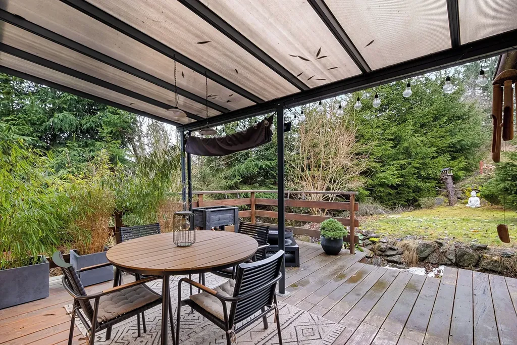 Na obytnou část domu plynule navazuje terasa, která je nově zastřešena hliníkovou konstrukcí a vytváří příjemné místo pro posezení. Dům je zasazen do jižně orientované zahrady, která je částečně okrasná, poskytuje dostatek soukromí a není jednotvárná. Zahrada poskytuje prostor pro nadzemní bazén, relaxační zónu i další využití podle vašich představ. V přední části pozemku u vjezdu je navíc místo, kde lze dobudovat přístřešek pro auto.