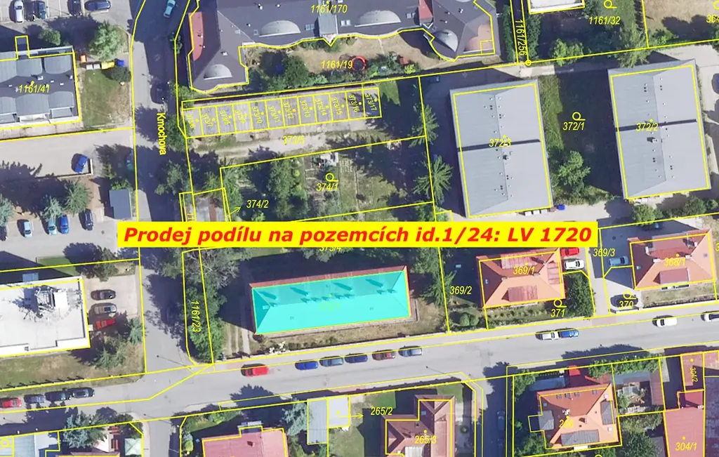 - Spoluvlastnický podíl ve výši 1/24 na parc. č. 373/6, výměra 22 m2 , zastavěná plocha v k. ú. Hostivice, LV 1820