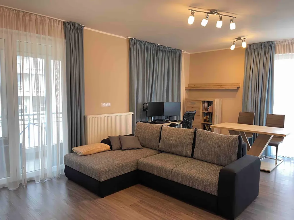 Dominantou je prostorný obývací pokoj propojený s plně vybaveným kuchyňským koutem a samostatná ložnice. Kuchyňský kout s oknem je vybaven spotřebiči značky Whirlpool – varnou deskou, troubou, digestoří, myčkou nádobí a lednicí.