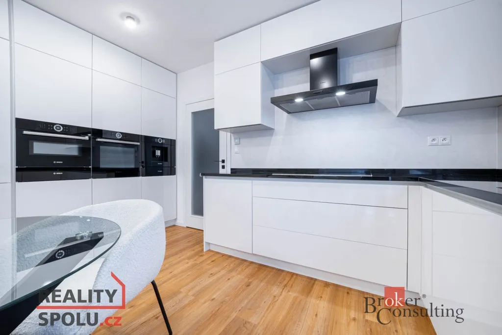 Luxusní kuchyň s pracovní deskou z přírodní žuly je vybavena vestavnými spotřebiči včetně trouby, kombinované trouby, kávovaru, vinotéky a myčky. Atmosféru domova dotváří krbová kamna, komfort zajišťují venkovní žaluzie a o klid i ochranu majetku se stará moderní zabezpečovací systém s alarmem a pohybovými senzory.