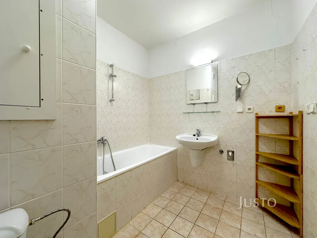- Koupelna s toaletou disponuje dostatečným místem pro pračku. Na chodbě je skříň a stropní úložný prostor.
