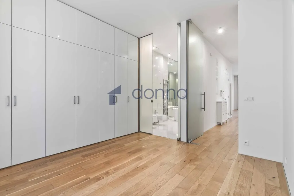 Dispozice bytu: vstupní hala, prostorný obývací pokoj s jídelní částí a plně vybaveným kuchyňským koutem, sklokeramická varná deska, trouba, myčka, lednice s mrazákem, mikrovlnná trouba a přímým vstupem na terasu. 2 ložnice, 2x koupelna (vana a toaleta + sprchový kout a toaleta). Interiér bytu je dílem známého architektonického studia Donlic. Vysoké standardy zahrnují vysokou kvalitu materiálů a zpracování, dřevěné podlahy, dlažba, nová francouzská okna, zabudované stropní osvětlení, centrální vypínač, alarm s možností napojení na PCO, bezpečnostní dveře, videotelefon.