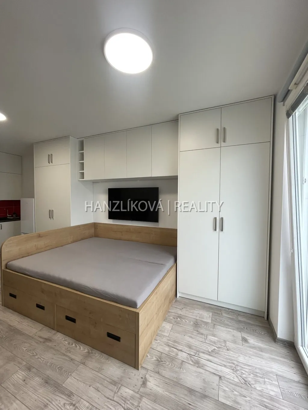 Nabízíme k pronájmu velice pěkný, moderně zařízený byt 1+kk s terasou v novostavbě bytového domu v širším centru v Českých Budějovic v Jírovcově ulici. Byt se nachází ve 5.NP, má velikost cca 30m2 . Byt se skládá z: chodby, ve které se nachází prostorná zrcadlová šatní skříň, koupelny se sprchovým koutem, pokoje s kuchyňským koutem, terasy. Byt je vybaven kuchyňskou linkou , základním vybavením koupelny . Příjemná poloha, bydlení je vhodné pro všechny věkové skupiny. V blízkosti domu je veškerá občanská vybavenost (OC IGY, Družba, školy, školky, lékař, restaurace) K bytu náleží sklep. Volný ihned po domluvě.