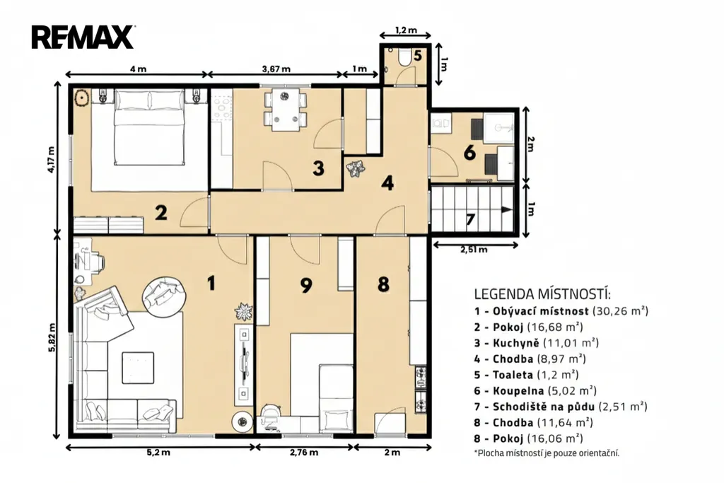 Součástí nemovitosti je také stodola s červenou střechou o 124 m² – perfektní prostor pro dílnu, garáž, ateliér nebo budoucí rekonstrukci. Nad hlavní částí domu se nachází rozsáhlá půda 232 m², která nabízí obrovský potenciál pro další rozšíření obytné plochy, loftové bydlení nebo investiční jednotky.