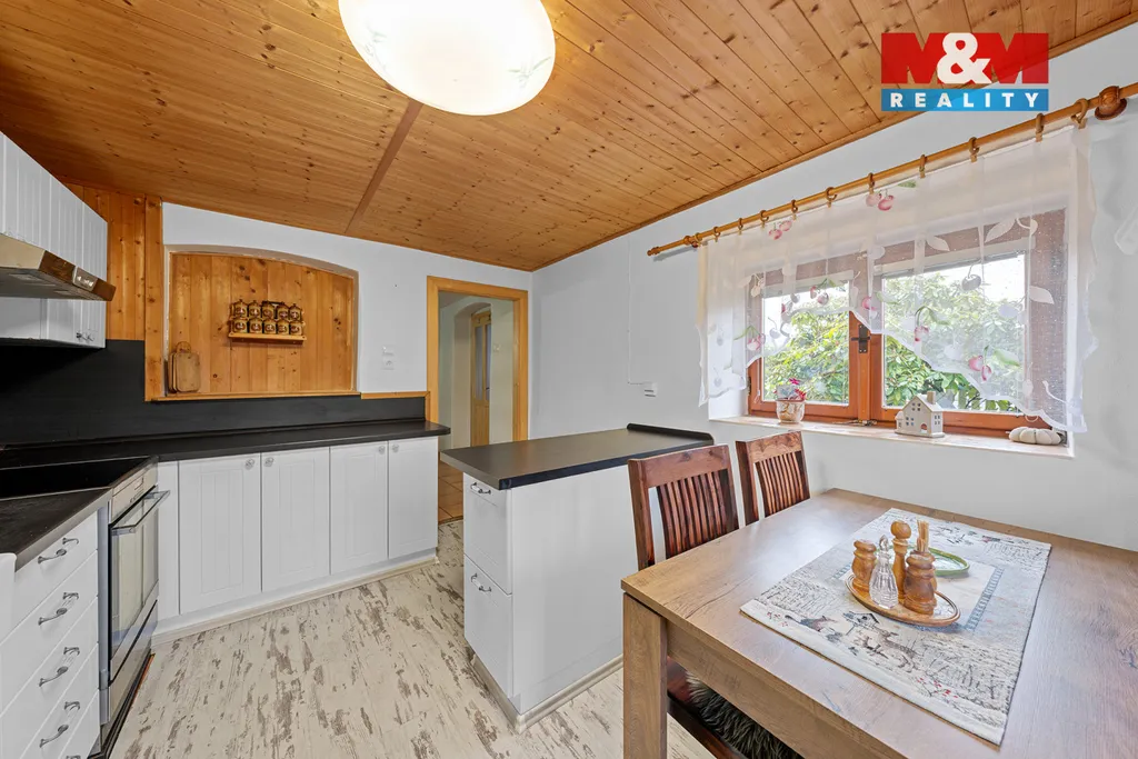 Prodej prostorného rodinného domu o užitné ploše 164 m² na pozemku 1 364 m² v klidné lokalitě Bynovce u Děčína, který je ideální pro rodinné bydlení, nebo kombinaci bydlení a práce z domova. Dům je ve velmi pěkném stavu a nabízí 7 místností, samostatnou kuchyň s moderní rohovou linkou a v přízemí nalezneme koupelnu s velkorysým sprchovým koutem. Jedná se o samostatně stojící dům se smíšenou konstrukcí, s jedním podzemním a třemi nadzemními podlažími. Půda nabízí dostatek úložného prostoru a v malém sklepě domu je studánka s vyvěrajícím pramenem. Součástí prodeje je udržovaná okrasná zahrada s ovocnými stromy, ideální pro relax i rodinné posezení. Na zahradě se nachází také praktická kůlna s místem pro auto a dostatečným úložným prostorem, garáž a bazén. Celá zahrada je oplocená, nabízí klid, soukromí a blízkost přírody, zároveň s dobrou dostupností do Děčína, kde jste za 10 minut. Pokud Vás tato nemovitost zajímá, kontaktujte makléře a domluvte si prohlídku.