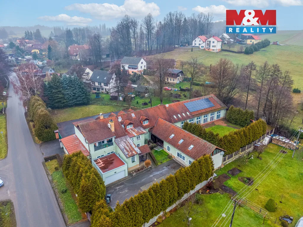 Nabízíme k prodeji výjimečnou rezidenci-multifunkční vícegenerační dům, který splňuje nároky na komfortní bydlení, soukromé wellness i podnikatelské využití na jednom místě. Nemovitost disponuje třemi samostatnými bytovými jednotkami. Dominantou domu je byt 5+1 s terasou a s přímým vstupem do fitness, bazénu a sauny.Tento byt disponuje luxusní kuchyní, krásným dech beroucím kachlovým krbem, dvě pracovny, dětským pokojem a ložnicí s velikou šatnou. K tomuto bytu je přistavěná samostatná přístavba, ve které se nachází bezbariérový byt 3+KK a nad ním podkrovní byt 2+1. Dům prošel v roce 2018 rekonstrukcí a může dobře sloužit jak k trvalému bydlení, tak i k podnikání v různých oblastech např. rekreační, penzion s ubytováním s nabídkou welness, fitness, plavání a sportovní aktivity. Veliké garážové prostory se dají využít například jako autodílna. V roce 2023 zřízená nová fotovoltaika pro úsporu energie. Velkém benefitem je také plánované otevření úseku dálnice D35. Zavolejte si o prohlídku