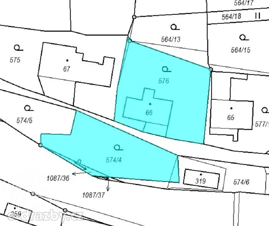 Výměra pozemku činí 1054 m2, kdy část pozemku se nachází na protější straně od domu. Tato část slouží jako parkoviště. Sklon pozemku je mírně svažitý. Pozemek je z části oplocený pletivem do ocelových sloupků a z části dřevěným plotem s podezdívkou. Trvalé porosty - traviny - zarostlé, neudržované.