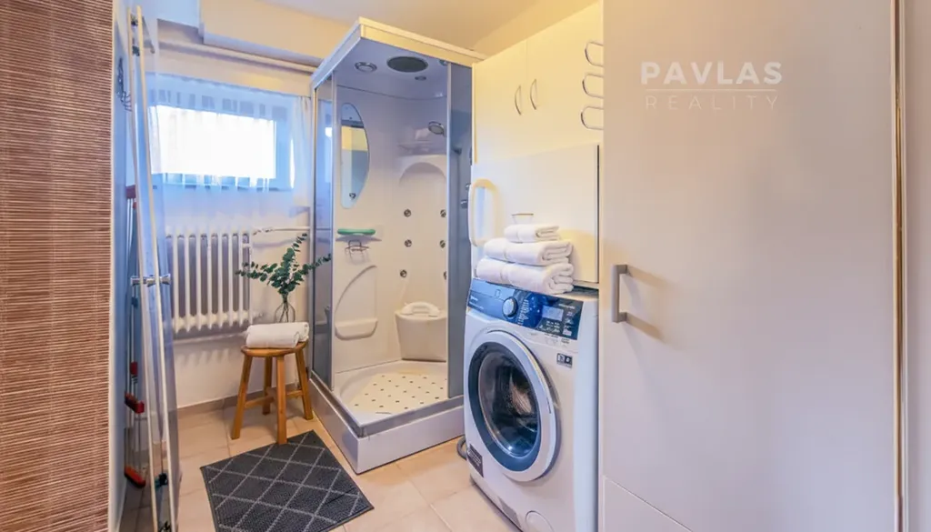 Architektonické řešení domu přímo vybízí k rozdělení na nezávislé sekce. Suterénní podlaží o ploše 83,5 m2 disponuje garáží a obytnou místností s koupelnou, což tvoří ideální základ pro menší jednotku typu 1+kk nebo ateliér. První a druhé nadzemní podlaží shodně nabízejí plochu 96 m2 s dispozicí 3+1, přičemž horní patro je již vybaveno samostatným vchodem, což je pro nájemní provoz klíčovým benefitem. Technická příprava pro kuchyňskou linku v nejvyšším patře a přítomnost celkem tří koupelen v domě výrazně zefektivňují proces finalizace jednotlivých bytů a snižují počáteční investiční náklady na stavební úpravy.