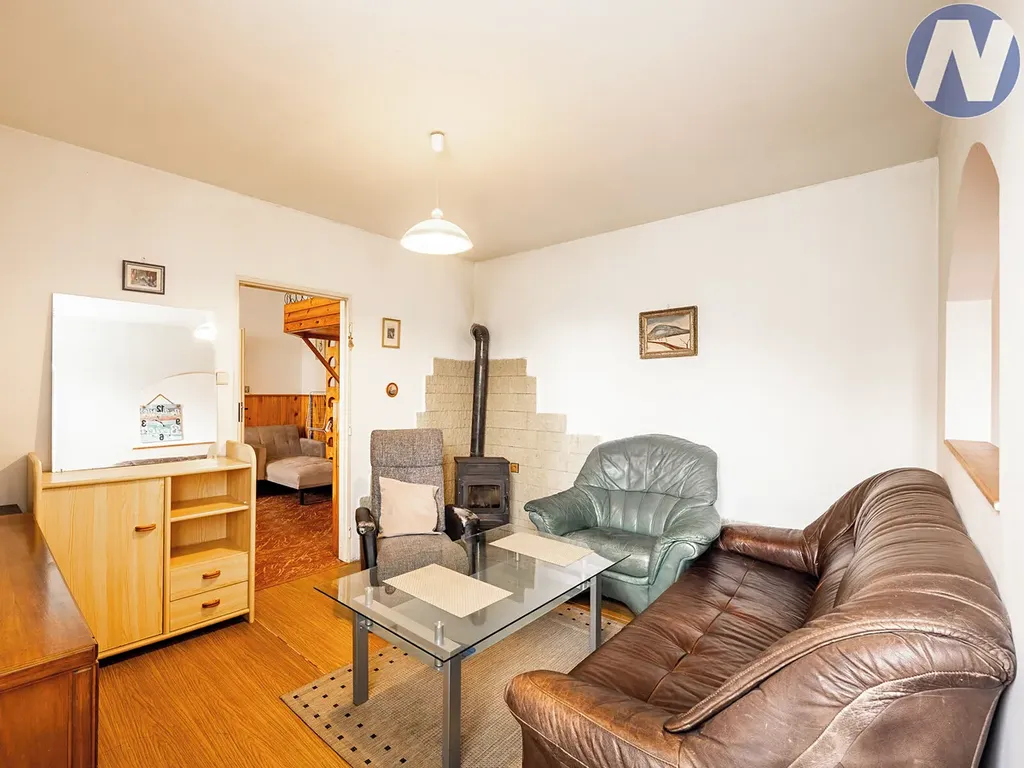 Byt je v původním, avšak udržovaném stavu a je plně obyvatelný – připravený k okamžitému nastěhování. Dispozice je praktická a dobře uspořádaná: samostatná kuchyně s místem pro jídelní stůl, prostorný pokoj aktuálně rozdělený přepážkou na obývací a spací část, a koupelna s toaletou. Voda i kanalizace jsou obecní, vytápění zajišťují kamna na dřevo, která navozují příjemnou atmosféru domova.
