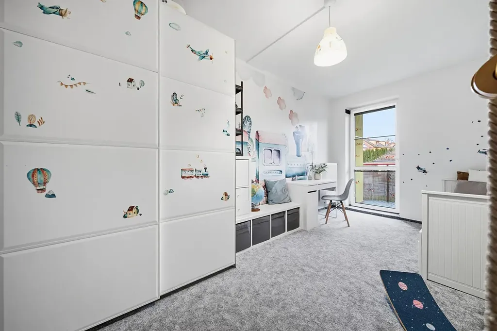 Z obývacího pokoje je přímý vstup na balkon a zároveň do dalšího pokoje, který je v současnosti využíván jako ložnice.