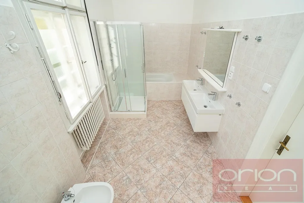 Nabízíme k pronájmu exkluzivní, nezařízený byt 6+1 o celkové ploše 274 m² s terasou, situovaný v 1. patře kompletně zrekonstruované reprezentativní neobarokní vily v prestižní rezidenční čtvrti v Praha 6 - Střešovice (Ořechovka). Byt disponuje vstupní halou, velkorysým prostorem se vstupem na terasu o velikosti 26 m² s výhledem do pečlivě udržované zahrady, prostorným obývacím pokojem s jídelnou, plně vybavenou kuchyní, čtyřmi ložnicemi, dvěma koupelnami, komorou, prádelnou s pračkou a samostatnou toaletou.