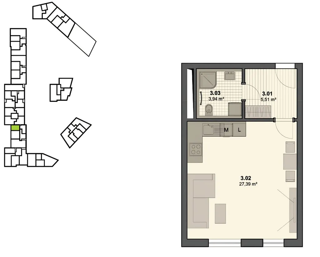 Nabízíme v rezidenci Nová Karolina k dlouhodobému podnájmu zařízený byt 1+kk o celkové ploše 37 m². Kuchyňská linka je vybavena sklokeramickou varnou deskou s digestoří, mikrovlnnou a elektrickou troubou, myčkou nádobí a lednicí s mrazákem. V pokoji je jídelní stůl se židlemi, pohovka, konferenční a TV stolek a dvoulůžková postel. Další úložné prostory jsou ve skříni na chodbě. Koupelna se sprchou, umyvadlem, pračkou a toaletou. Veškerá občanská vybavenost v bezprostřední blízkosti. Pro více informací o této nemovitosti nebo sjednání prohlídky nás prosím kontaktujte nebo vyplňte níže uvedený formulář, rádi Vám pomůžeme.