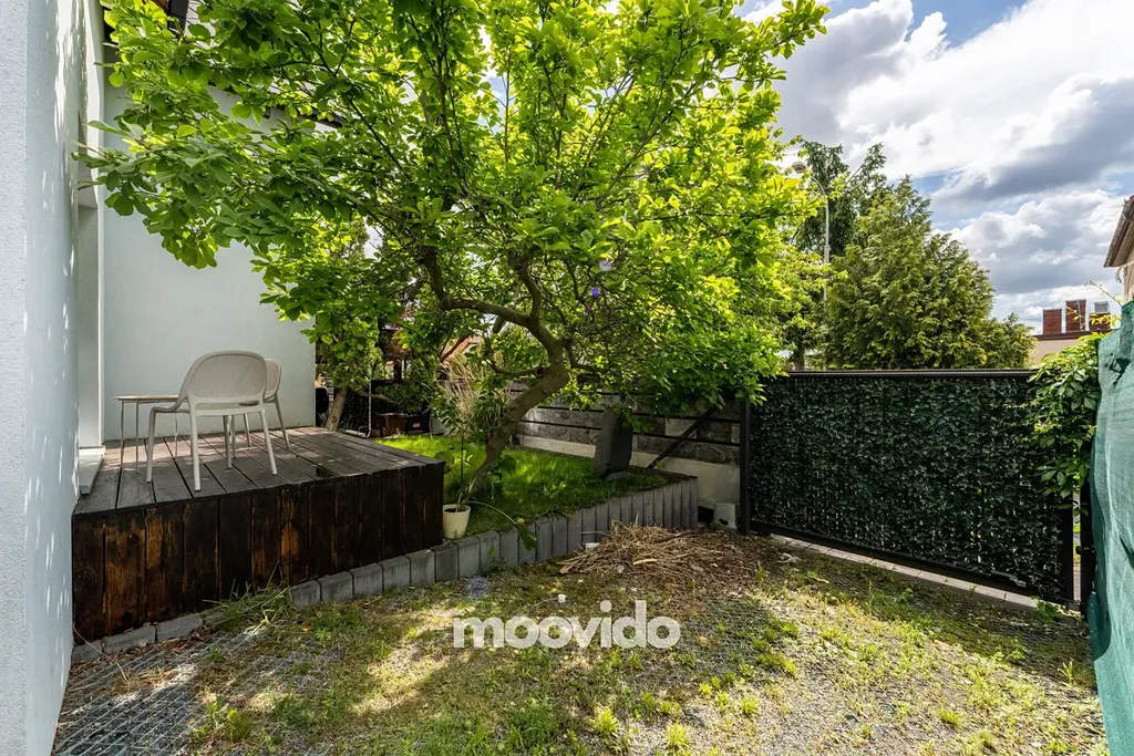 Parkování je zajištěno přímo na pozemku – k dispozici jsou dvě krytá parkovací stání s dálkově ovládanou bránou a jedno venkovní stání. Zahrada disponuje automatickým zavlažovacím systémem s možností napojení na vlastní studnu a může sloužit jako relaxační zóna pro zaměstnance i pro neformální schůzky s klienty.