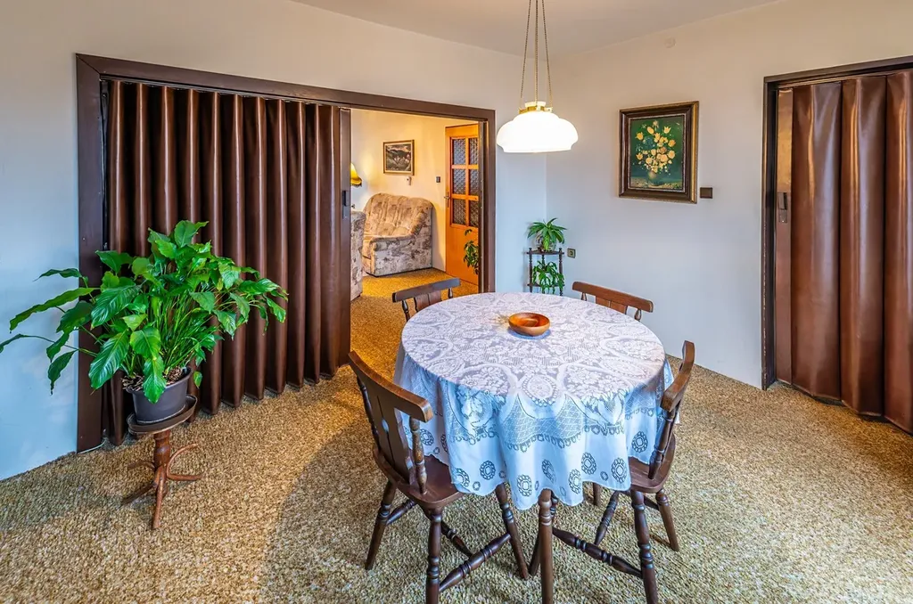 Nabízíme k prodeji prostorný, kompletně podsklepený dům o dvou nadzemních podlažích s celkovou užitnou plochou 150 m², který je ihned obyvatelný. I když je v původním, zachovalém stavu, je na první pohled patrné, že o něj bylo pečováno s láskou a respektem. Novému majiteli tak nabízí ideální kombinaci – můžete zde bydlet hned, a zároveň si dům postupně upravit podle svých představ.
