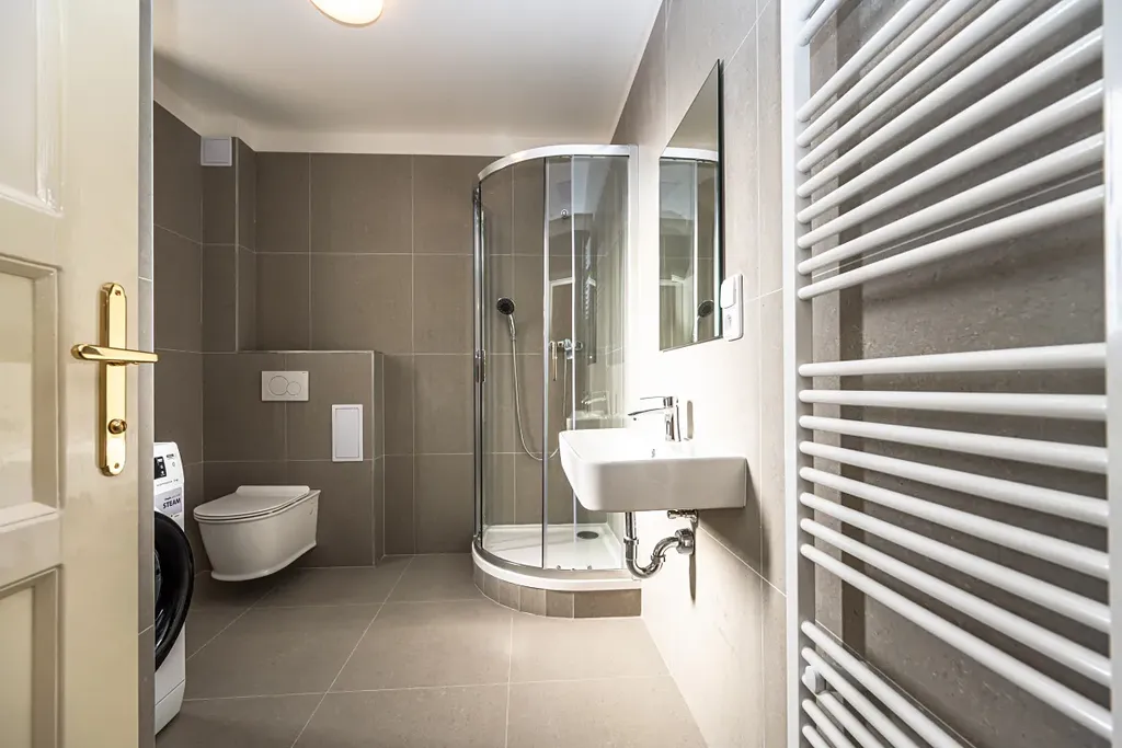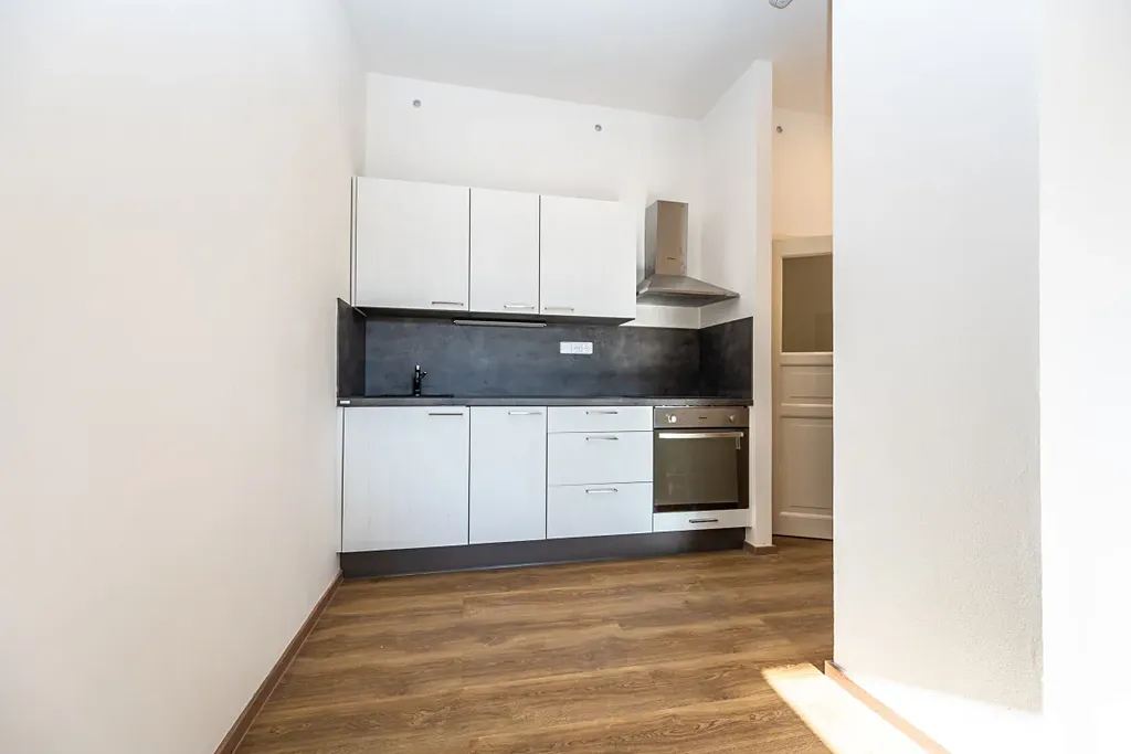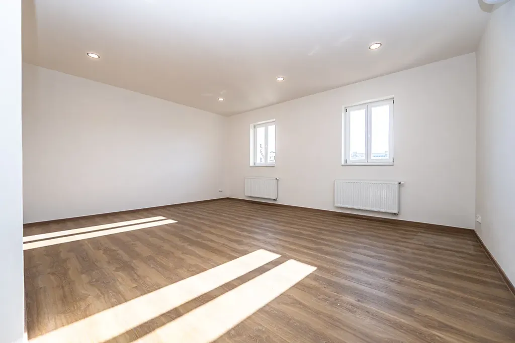 V bytě se v něm kuchyňská linka, která je vybavená spotřebiči ( sklokeramická deska, elektrická trouba, myčka, lednice a digestoř), prostorná obytná místnost orientovaná do ulice, koupelna se sprchovým koutem, toaletou a pračkou. Plovoucí podlahy a dlažba, vytápění zajišťuje vlastní plynový kotel.