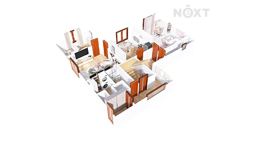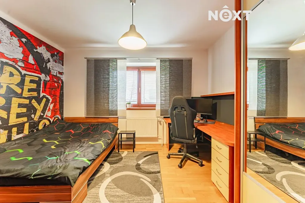 Horní podlaží tvoří vkusně řešený byt 3+kk. Srdcem tohoto patra je prostorný obývací pokoj propojený s plně vybavenou kuchyní, který vytváří příjemnou a útulnou atmosféru pro každodenní život i setkávání rodiny a přátel. Nechybí koupelna s vanou a ložnice se vstupem na prostornou terasu orientovanou na jihovýchod – ideální místo pro ranní kávu i večerní relaxaci.
