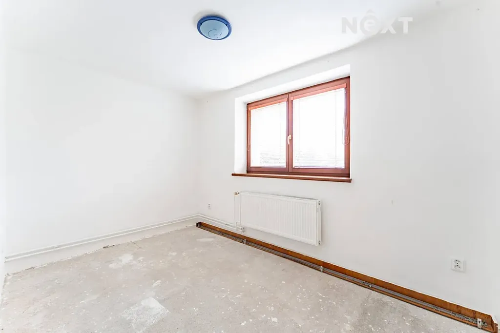 V přízemí se nachází technická místnost a bytová jednotka o dispozici 3+1. Jeden pokoj a koupelna se sprchovým koutem jsou již dokončeny, ostatní místnosti čekají na dokončení podlahových krytin – nový majitel si tak může interiér upravit podle svých představ.