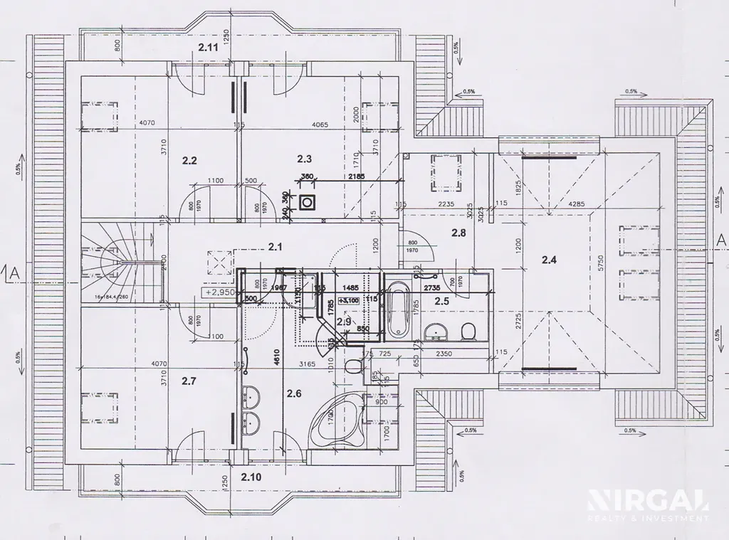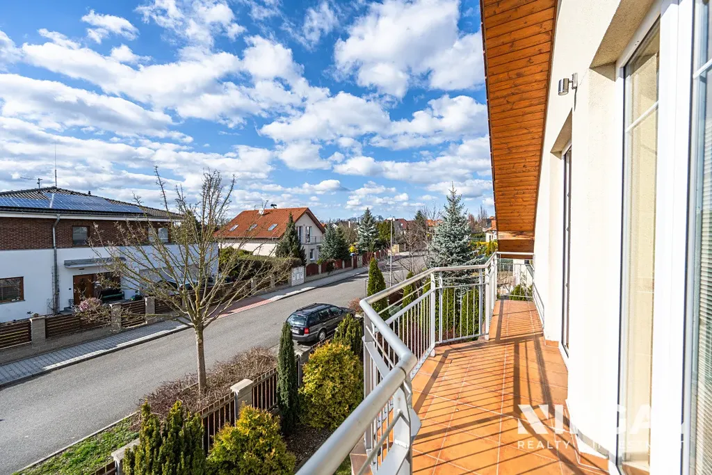 V prvním patře (obytné podkroví) se nachází čtyři útulné ložnice. Hlavní ložnice disponuje vlastní koupelnou, toaletou a šatnou. Dále zde najdete prostornou koupelnu s vanou, dvěma umyvadly a toaletou. Tři ze čtyř pokojů mají přístup na balkony s nádherným výhledem do okolní krajiny.