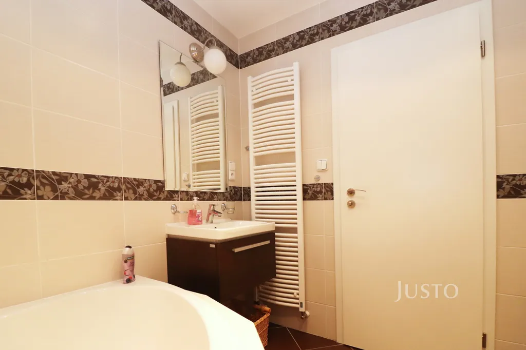 V bytě je vše v moderním designu, jsou použity kvalitní materiály. Byt je světlý díky širokým oknům, vchod na terasu je z obou místností.