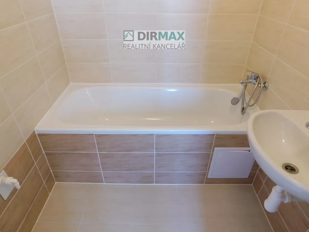 V koupelně je vana, přípojka na pračku a umyvadlo. Toaleta je pak samostatně s malým umyvadlem. Z bytu je pěkný výhled do okolí.