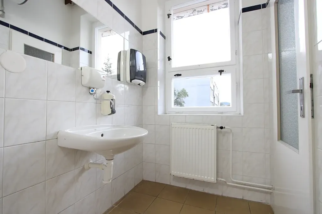 V koupelně je k dispozici sprchový kout, umyvadlo a radiátor.