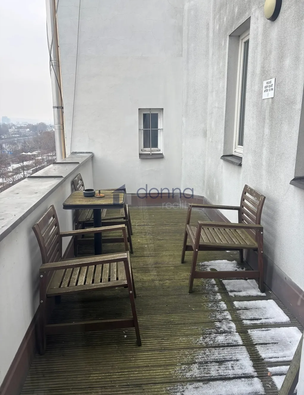 Z obývacího pokoje je vstup na balkón s krásným výhledem na Vltavu a Letenské sady.