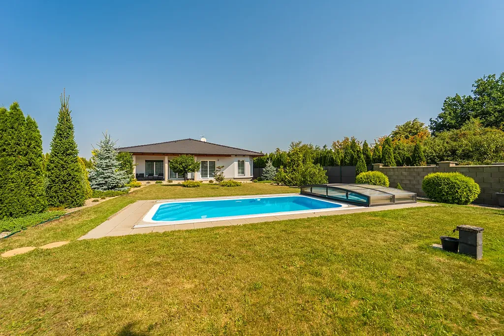 Nabízíme prodej moderního samostatného rodinného domu v lukrativní lokalitě obec Chýně Praha západ. Prostorný a světlý dům s obytnou plochou 220m2 a dispozicí 5kk, garáží, velkou zahradou a bazénem je zárukou komfortu pro rodinné bydlení v klidné části obce.