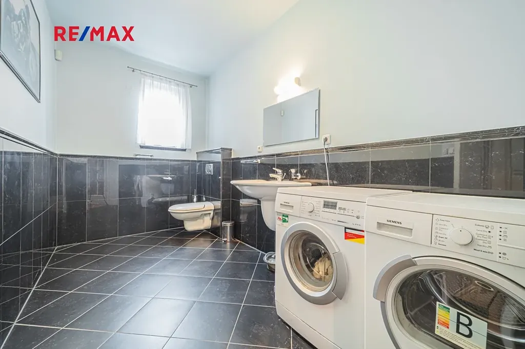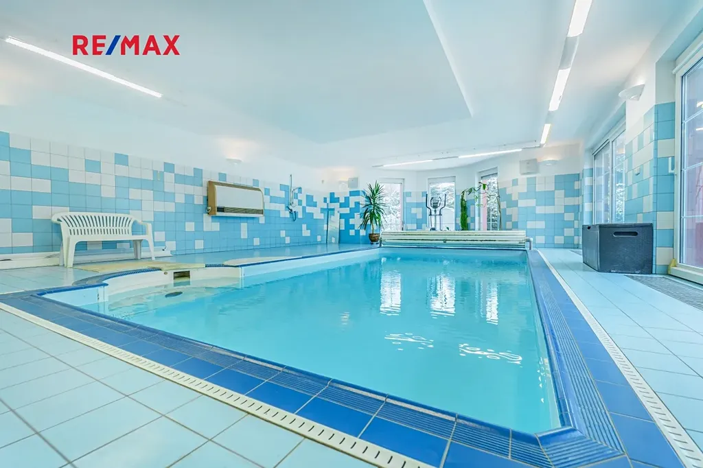 Nabízíme Vám ke koupi podsklepený rodinný dům 6+2 (774 m2) s vnitřním bazénem, garážemi až pro 6 automobilů a zahradou s okrasným jezírkem na velmi klidném místě v blízkosti lesa v obci Žilina (u Kladna).