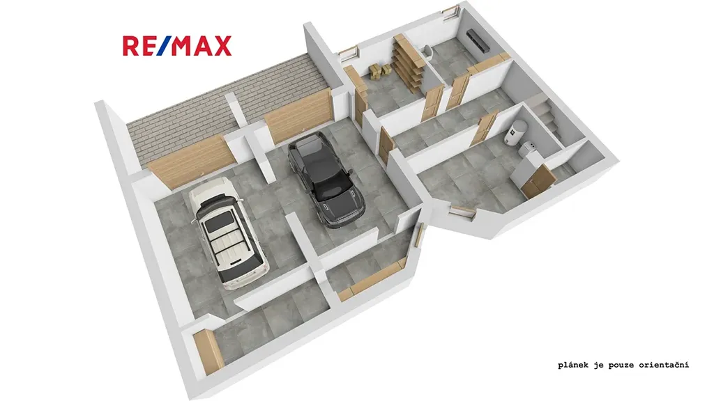 Sklepní prostory tvoří kotelna, úložné prostory a garáže pro dva až tři automobily. Na Hranici pozemku je umístěna další samostatně stojící garáž pro další tři automobily.
