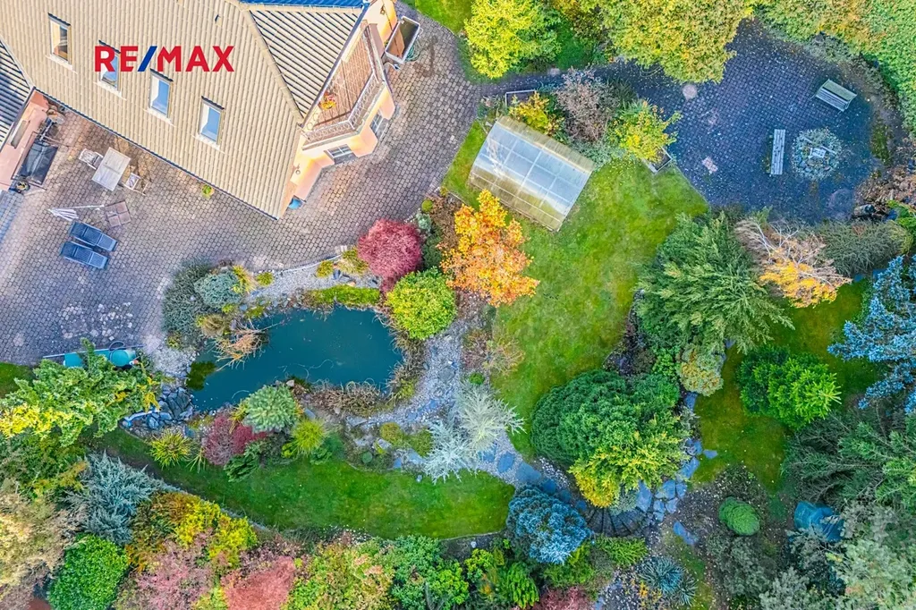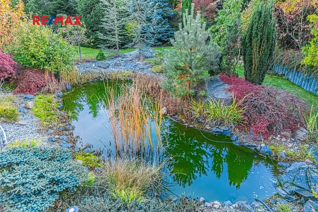 Velkoryse řešená nemovitost kolaudovaná v r. 2003 (hlavní stavba) a v r. 2006 (samostatná garáž) je umístěna na pozemku o celkové výměře 2023 m2. Velkou část pozemku tvoří profesionálně založená a již vzrostlá okrasná zahrada s jezírkem a terasami. Při stavbě byly použity velmi kvalitní materiály (Porotherm + zateplení vatou, monolitické stropní konstrukce, střešní krytina Bramac, měděné svody, foliové hydroizolace).