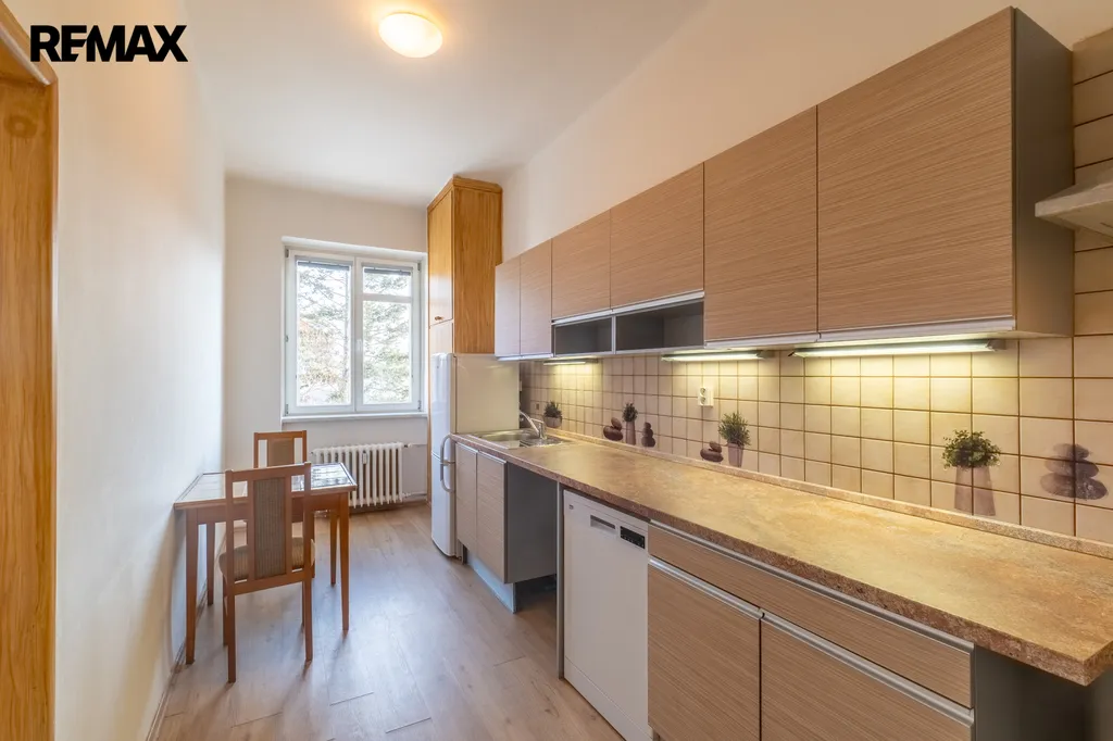 Toaleta je samostatná. V obytných pokojích jsou renovované parketové podlahy, které bytu dodávají příjemný charakter.