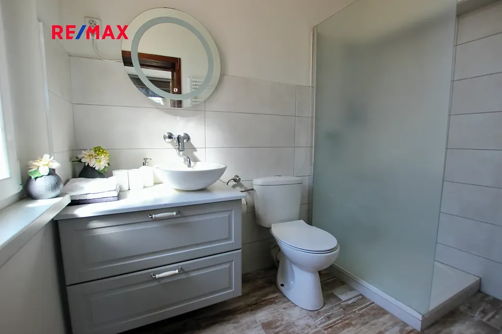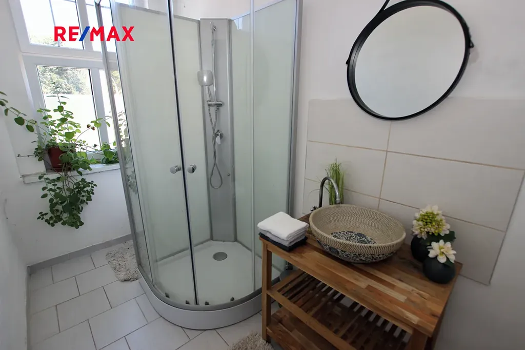 V přízemí domu je byt před rekonstrukcí o dvou pokojích, kuchyň, toaleta, koupelna, spíž a garáž. Dům je částečně podsklepen a je tu k dispozici technické zázemí domu.